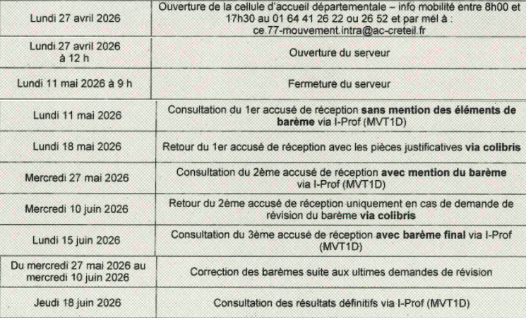 - Ensuite faire une demande d'exeat, les dossiers doivent être transmis par les enseignants du lundi 16 mars au vendredi 3 avril 2026 : Remplir le formulaire (en PJ) pour les deux demandes (EXEAT/INEAT) à transmettre uniquement au département d'origine. Les différents documents seront ensuite à déposer sur le portail Colibris « MOUVEMENT COMPLÉMENTAIRE EXEAT-INEAT 2026-2027 »